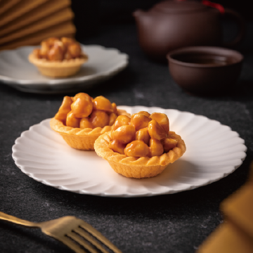 ◆ 特選澳洲夏威夷豆,沾裹著法國產地嚴選奶油以及特調焦糖。奢侈堆疊在酥脆塔皮上,口感酥脆華麗。