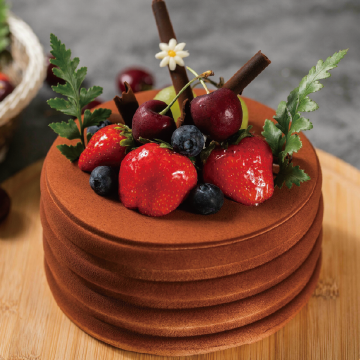 ◆ 巧克力蛋糕體 夾層:黑櫻桃凍、布丁 。